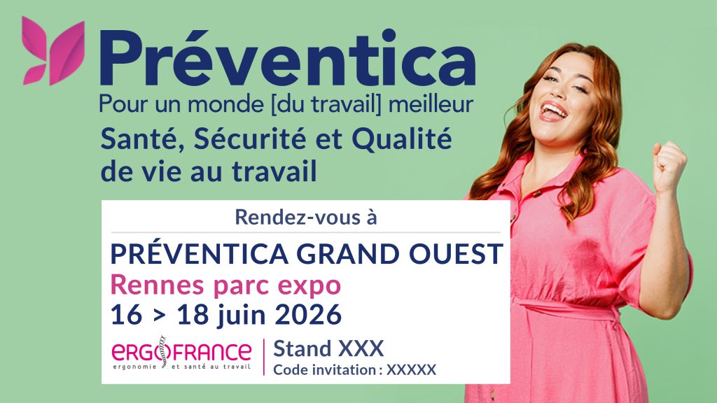 Rendez-vous les 16, 17 et 18 juin prochains à Rennes pour le salon Preventica, l’événement de référence dédié à la santé, la sécurité et les conditions de travail. Ergofrance sera présent et vous attend sur son stand pour vous faire découvrir ses dernières solutions ergonomiques.